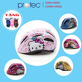 Nón bảo hiểm xe đạp trẻ em Protec SMILE cho bé gái, họa tiết đáng yêu, năng động, có đèn hậu an toàn- Hàng chính hãng - Hello Kitty hồng nhạt - size S